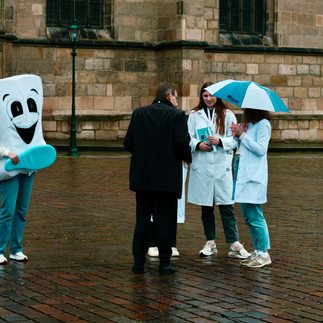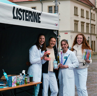 Nadšení studenti všech ročníků se v tento den ve svých fakultních měst sešli v bílých pláštích či halenách, vybaveni velkými zubními kartáčky, modely čelistí a dalšími demonstračními pomůckami, připraveni podělit se o svoje znalosti o správném čistění zubů s každým, kdo měl čas a chuť poslouchat. Kolemjdoucí měli také možnost aktivně se zapojit a ukázat nám pomocí kartáčku značky CURAPROX, jakou čistící techniku doma používají. Za odměnu si poté svůj nový kartáček odnesli domů, obohaceni znalostmi a motivací, jak zlepšit nedostatky v péči o svůj chrup a zabránit tak vzniku zubního kazu. Zájemci měli také možnost vyzkoušet si u našich stánků práci s mezizubními kartáčky a ochutnat různé ústní vody značky LISTERINE.